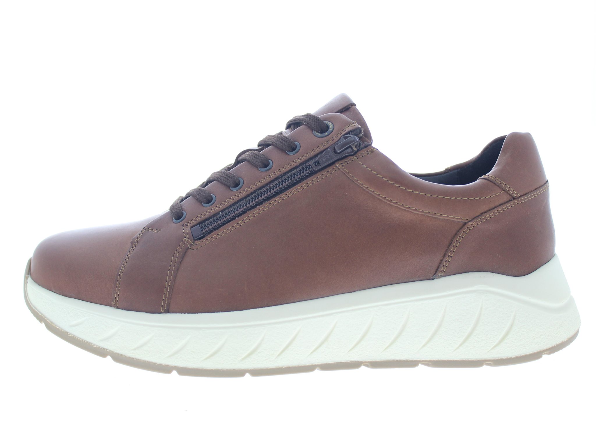 Solidus heren sneaker, model Ken. De Ken is een veelzijdige sneaker qua look en functie. Door de verstijfde loopzool met een versnelde afwikkeling, rol je makkelijk je voeten af bij een gelimiteerde functie van het grote teengewricht. Ook uitermate geschikt bij voorvoet en peesplaat gerelateerde klachten. Dit model is uitgevoerd in een K/M combinatie, dus het valt als een wijdte K, maar met de extra uitneembare binnenzool vergroot je de volume tot een wijdte M. Grijs/taupe nubuck. Voorzien van een laterale rits voor extra comfort bij het uit en aantrekken van de schoen.
