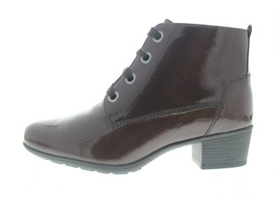 Solidus dames laarsje, model Kerry. Stijlvol met grote veterringen en fat-laces voor een casual look met een ruig randje. Kastanje bruin lakleer met een flanellen binnenvoering voor een warmere beleving. Wijdte K, geschikt voor de brede voet. De mediale rits maakt het aan- en uittrekken uiterst gemakkelijk. Het voetbed is uitneembaar voor eventueel andere inlegzolen.