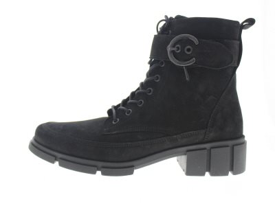 Solidus hippe bootie, model Kibu. Voorzien van een flexibele loopzool voor een comfortabel flexibele afwikkeling. Zwart nubuck leer met een hoge schacht en een rits langs de mediale zijde van de voet. Blokhak voor extra stabiliteit en een stevige contrefort. Dit model heeft een dubbel uitneembare voetbed dat van een H wijdte/breedte maat overgaat in een wijdte K, dus dubbel functioneel en extra comfortabel!