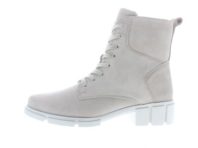 Solidus hippe bootie, model Kibu. Voorzien van een flexibele loopzool voor een comfortabel vrije afwikkeling. Beige nubuck leer met een hoge schacht en een rits langs de mediale zijde van de voet. Blokhak voor extra stabiliteit en een stevige contrefort. Dit model heeft een dubbel uitneembare voetbed wat van een H wijdte/breedte maat overgaat in een wijdte K, dus dubbel functioneel en extra comfortabel! Dit model heeft een velours/pluche binnenvoering tot aan de tenen voor een warmere voetklimaat.