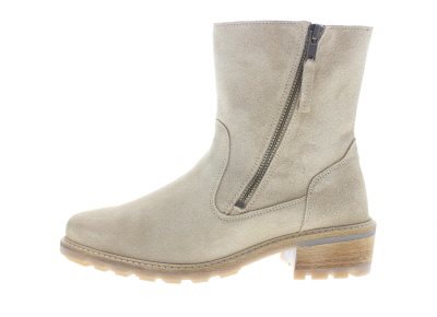 Solidus casual laarsje, model Kinga. Crème suède. Twee ritsen waarvan alleen de mediale rits functioneel is. Blokhak voor extra stabiliteit en een stevig onderwerk om de afwikkeling te versoepelen. Voorzien van een grof profiel zodat je makkelijk kan voortbewegen als er sneeuw ligt, en volledig gevoerd om je voeten heerlijk warm te houden. Dit model heeft een dubbel uitneembare voetbed dat van een H breedte maat overgaat in een wijdte K, dus dubbel functioneel en extra comfortabel!