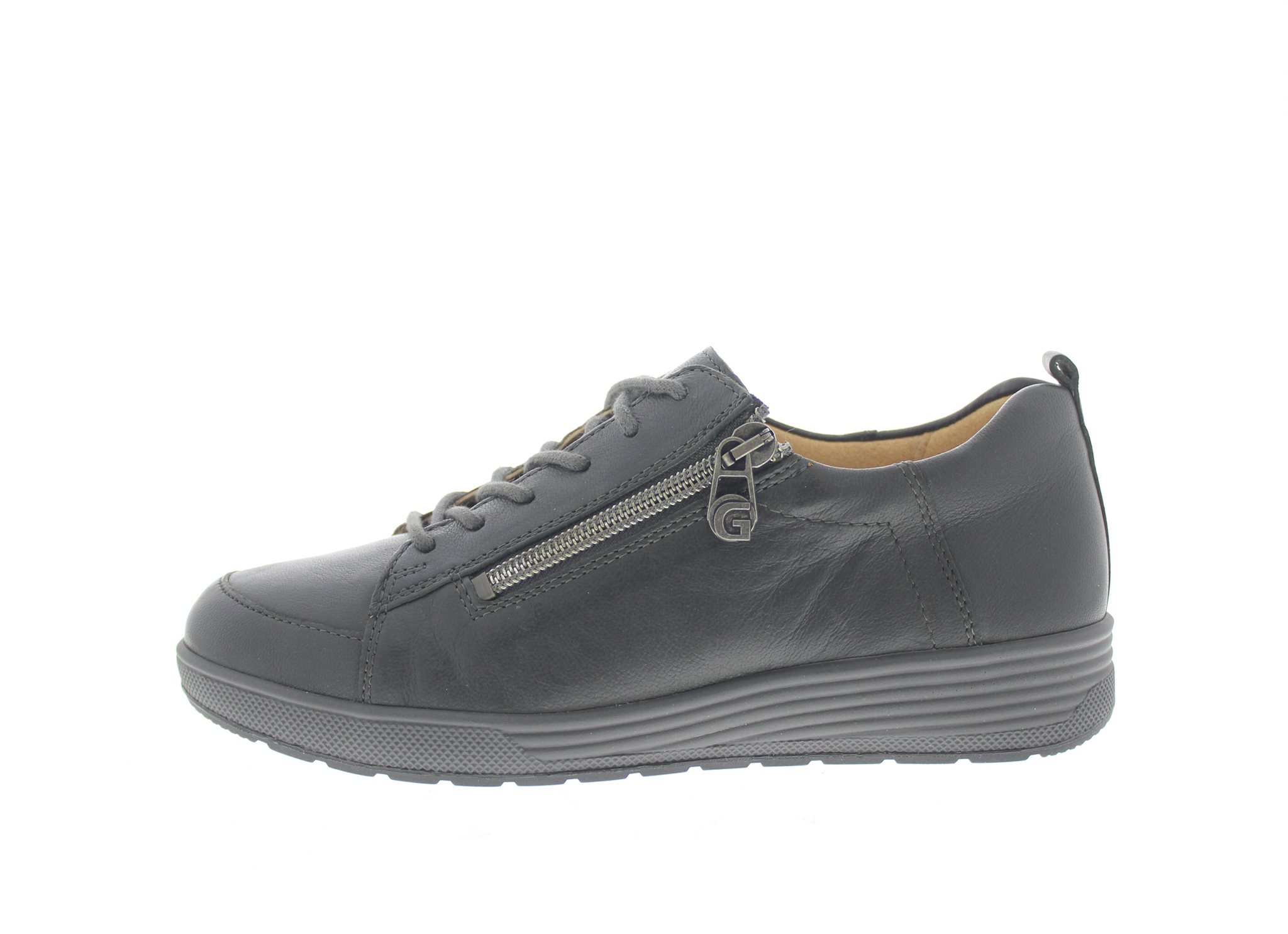 Ganter dames minimalistische sneaker, model Klara uit de Sensitiv lijn. Groen glad leer met een zachte binnenvoering en een rits voor het instap gemak. De flexibele loopzool zorgt voor een neutrale en natuurlijke afwikkeling van je eigen voet. Wijdte K, geschikt voor de brede voet. Uitneembaar voetbed. Goed te dragen als dagelijkse schoen voor mensen met weinig voetklachten.