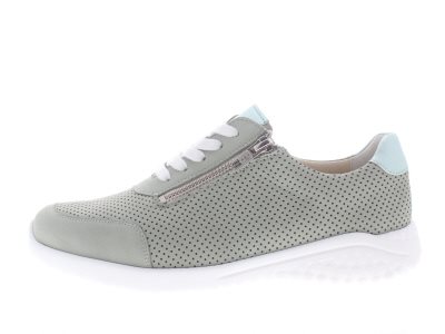 Solidus flexibele dames sneaker voor de voeten die weinig beperking dulden, model Kyle. Voorzien van een rits voor het instapgemak, zeer licht van gewicht met een heerlijk dempende EVA rubberen loopzool, en stevig rondom de enkel vanwege een toegespitste hielkap. Jade groen nubuck leer. Wijdte K, geschikt voor de brede voet. Uitneembaar voetbed.