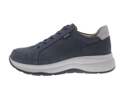 Finn Comfort dames sneaker met een chunky afwikkelzool, model Lafayette uit de TrendLine. Blauw nubuck. Valt als een wijdte H, geschikt voor de iets bredere voet. Voorzien van een mediale rits voor het instapgemak. Uitneembaar ecologisch en anatomisch gevormde voetbed. De buitenzool heeft dempende eigenschappen en wikkelt heerlijk af, ideaal bij gevoelige voorvoeten en hielklachten.
