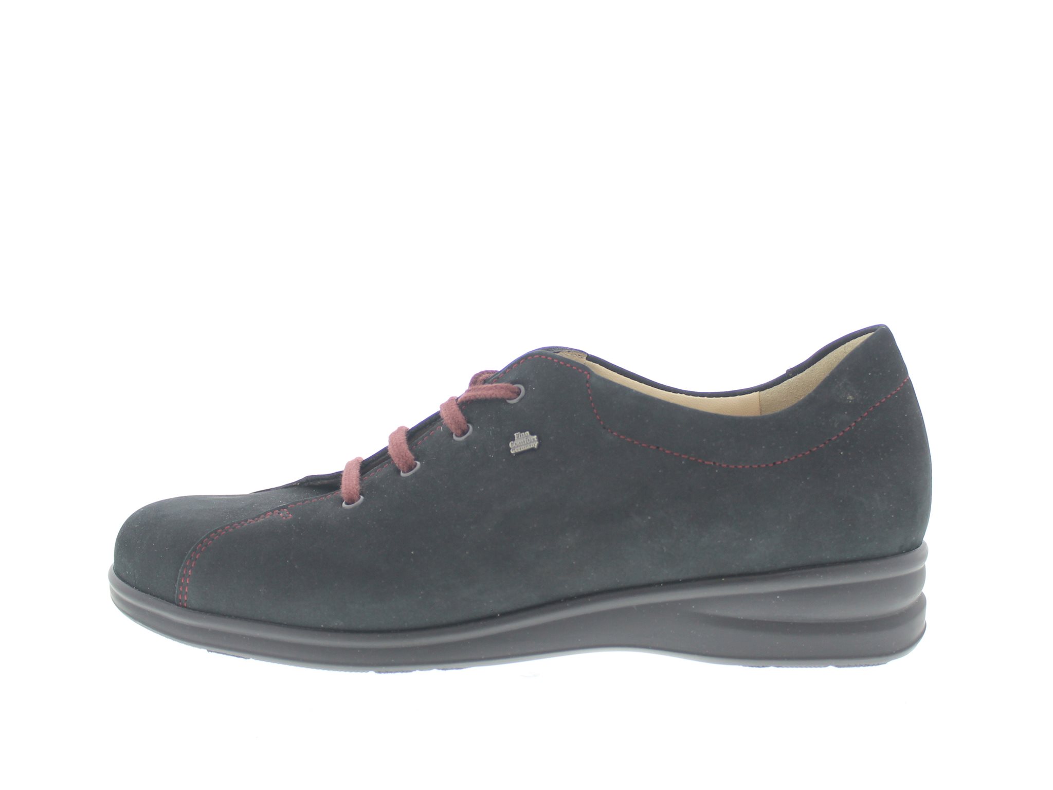 Finn Comfort dames veterschoen, model Lasino uit de FinnSlim lijn. Voorzien van een flexibele loopzool. Zwart nubuck. Valt als een wijdte G. Geschikt voor de normale voet. Uitneembaar ecologisch en anatomisch gevormde voetbed. Finn Comfort inlegzolen zijn los verkrijgbaar. Hakhoogte 40mm. Hielheffing 18mm.