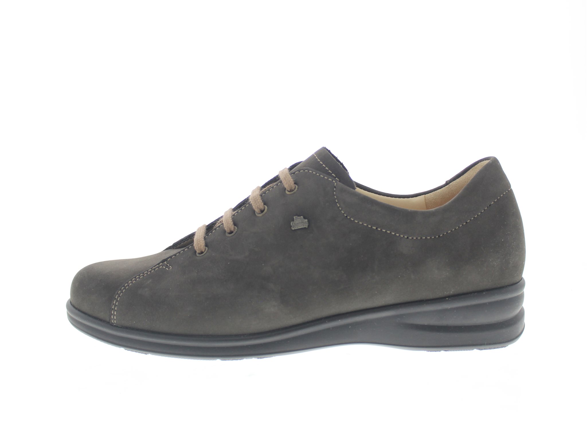 Finn Comfort dames veterschoen, model Lasino uit de FinnSlim lijn. Voorzien van een flexibele loopzool. Grijs nubuck. Valt als een wijdte G. Geschikt voor de normale voet. Uitneembaar ecologisch en anatomisch gevormde voetbed. Finn Comfort inlegzolen zijn los verkrijgbaar. Hakhoogte 40mm. Hielheffing 18mm.