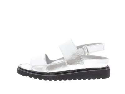 Recharge dames sandaal met drie verstelbare klittenbanden, model Lynn, geschikt voor de smalle tot normale voet, uitneembaar voetbed, zilver glad leer, dempende buitenzool, hakhoogte 20 mm.