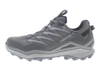 Lowa sportieve wandel sneaker voor heren, model Maddox Pro GTX Lo. Lichtgewicht en flexibel met een dempende afwikkelzool, ook geschikt voor trail doeleinden/alle terreinen en alle weersomstandigheden. Gore-Tex bescherming tegen natte voeten. Grijs en volledig bestaande uit synthetische materialen. Valt als een wijdte G, geschikt voor de gemiddelde voet. Uitneembaar voetbed. Hakhoogte 35mm. Hielheffing 15mm.