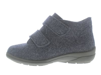Solidus dames pantoffel/huisschoen, model Maike. Voorzien van een dubbele klittenbandsluiting. Blauw wolvilt voor een aangenaam zachte ervaring. Wijdte M, geschikt voor de brede en volle voet, zeer aangenaam bij een hallux valgus en bunions. Uitneembaar voetbed, voor uw eigen opmaat gemaakte zolen.