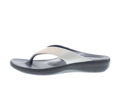 Aetrex dames teenslippers, model Maui Flips in een zwarte kleur met een glossy roze finish. Aetrex slippers zijn speciaal ontwikkeld om je te voorzien van een goede steun en houding, daar waar een normale slipper ophoud, en aan te bevelen voor het verlichten van peesplaat en hielspoor gerelateerde klachten. De slippers zijn uitgerust met een ingebouwde antipronatie blok en anatomisch gevormde voetbed, dat ervoor zorgt dat je niet met de enkels naar binnen knikt, dat namelijk pijn kan veroorzaken in de enkels, knieën, heupen en onderrug. De Aetrex slippers zorgen voor een soepele afwikkeling, dit allemaal gemaakt van een hoogwaardige kwaliteit polyurethaan dat heerlijk zacht aan je voeten zit en een maximale demping garandeert. Uiterst geschikt om te gebruiken als badslippers, op de camping, op het strand of gewoon bij het doen van je boodschappen. De breedte valt tussen een wijdte G en H. Geschikt voor de normale tot iets bredere voet.