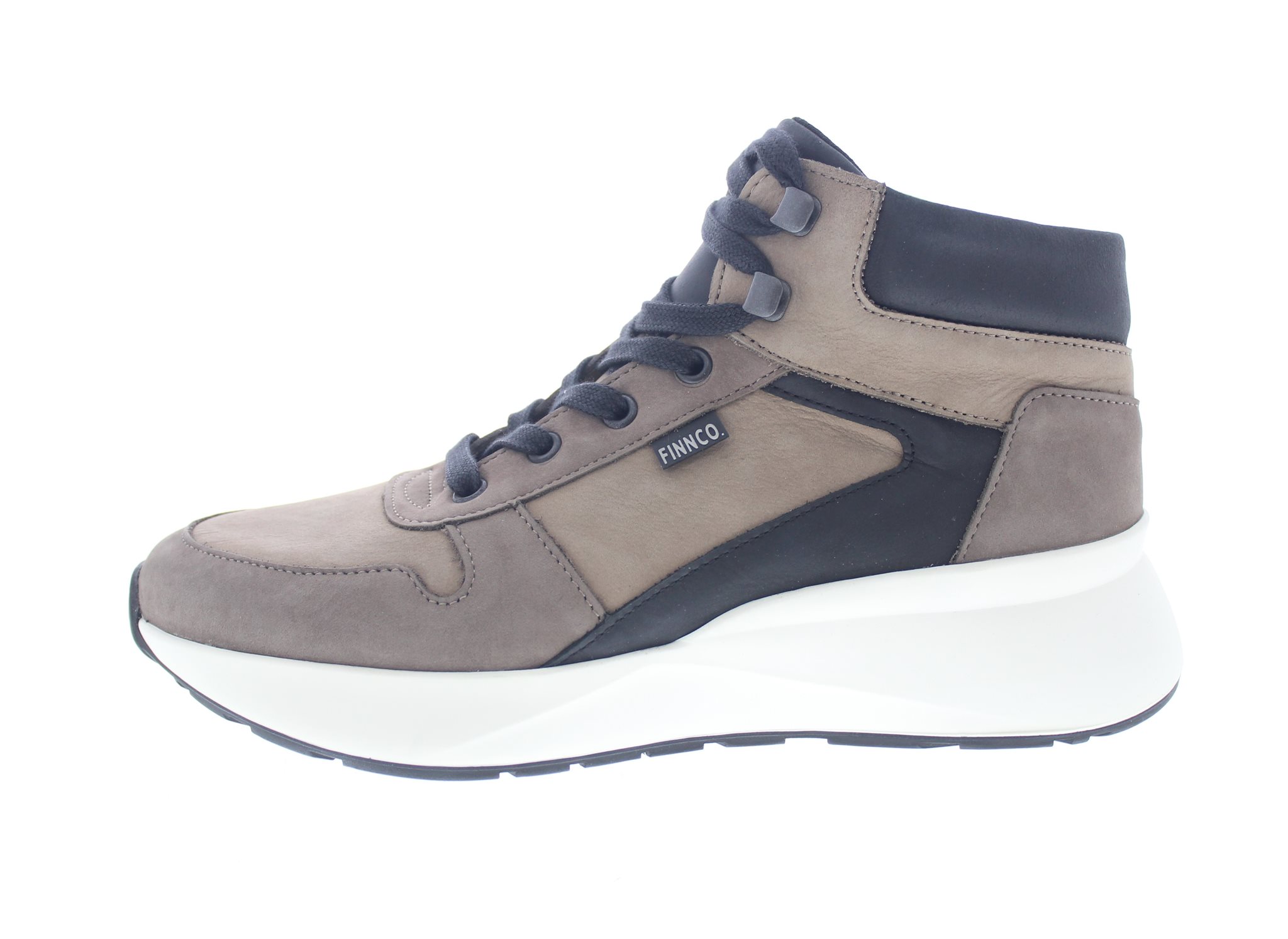 Finn Comfort halfhoge dames sneaker met een chunky afwikkelzool, model Meribel uit de CitySport lijn. Taupe nubuck met zwarte details. Valt tussen een wijdte H en K, geschikt voor de iets bredere voet. Uitneembaar ecologisch en anatomisch gevormde voetbed. De buitenzool heeft dempende eigenschappen en wikkelt heerlijk af, ideaal bij gevoelige voorvoeten en afwikkelproblemen. Ook geschikt bij een peesplaat ontsteking of bij een hallux limitus. Hakhoogte 40mm. Hielheffing 15mm.