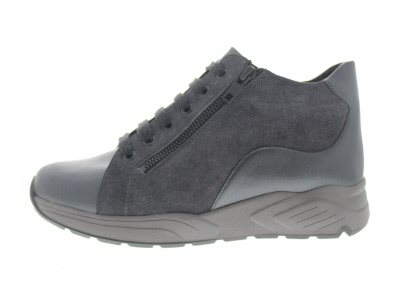 Solidus dames bootie met een ‘chunky’ afwikkelzool, model Mia. Voorzien van een laterale rits voor het instapgemak. Volledig wol gevoerd voor extra warmte en een zachte en voelbaar stiknadenvrije teenbox. Ook door de voering perfect voor het ontlasten van pijnlijke voeten bij diabetische en reumatische klachten, bunions en ander voetknobbels. Grijs suède met leer. Wijdte M, geschikt voor de zeer brede en volle voet. Uitneembaar voetbed.