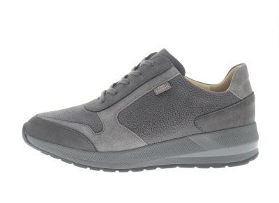 Finn Comfort dames veterschoen, model Mori uit de FinnStretch lijn. Voorzien van een flexibele afwikkelzool en een mediale rits. Grijs nubuck met suèdine finished neopreen, geschikt om de druk bij gevoelige bunions/hallux valgus te verlichten. Valt als een wijdte H met een iets meer toegeknepen hielsluiting, perfecte pasvorm voor een hallux valgus voet in combinatie met een hogere hielheffing. Geschikt voor de iets bredere voorvoet rond de balwijdte, aangenaam comfortabele pasvorm. Uitneembaar ecologisch en anatomisch gevormde voetbed met een extra zachte tussenlaag voor meer schokabsorptie.