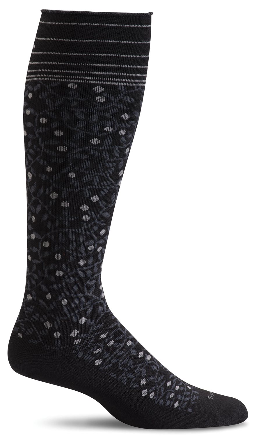 De kousen voorkomen vermoeide en opgezette benen en voeten en helpen spataderen tegen te gaan.
