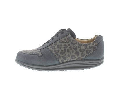 Finn Comfort dames veterschoen, model Noordwijk, geschikt voor de slanke voet, Finnamic afwikkelzool, combi zwart en luipaardprint nubuck leer, uitneembaar voetbed. Hakhoogte 32 mm.