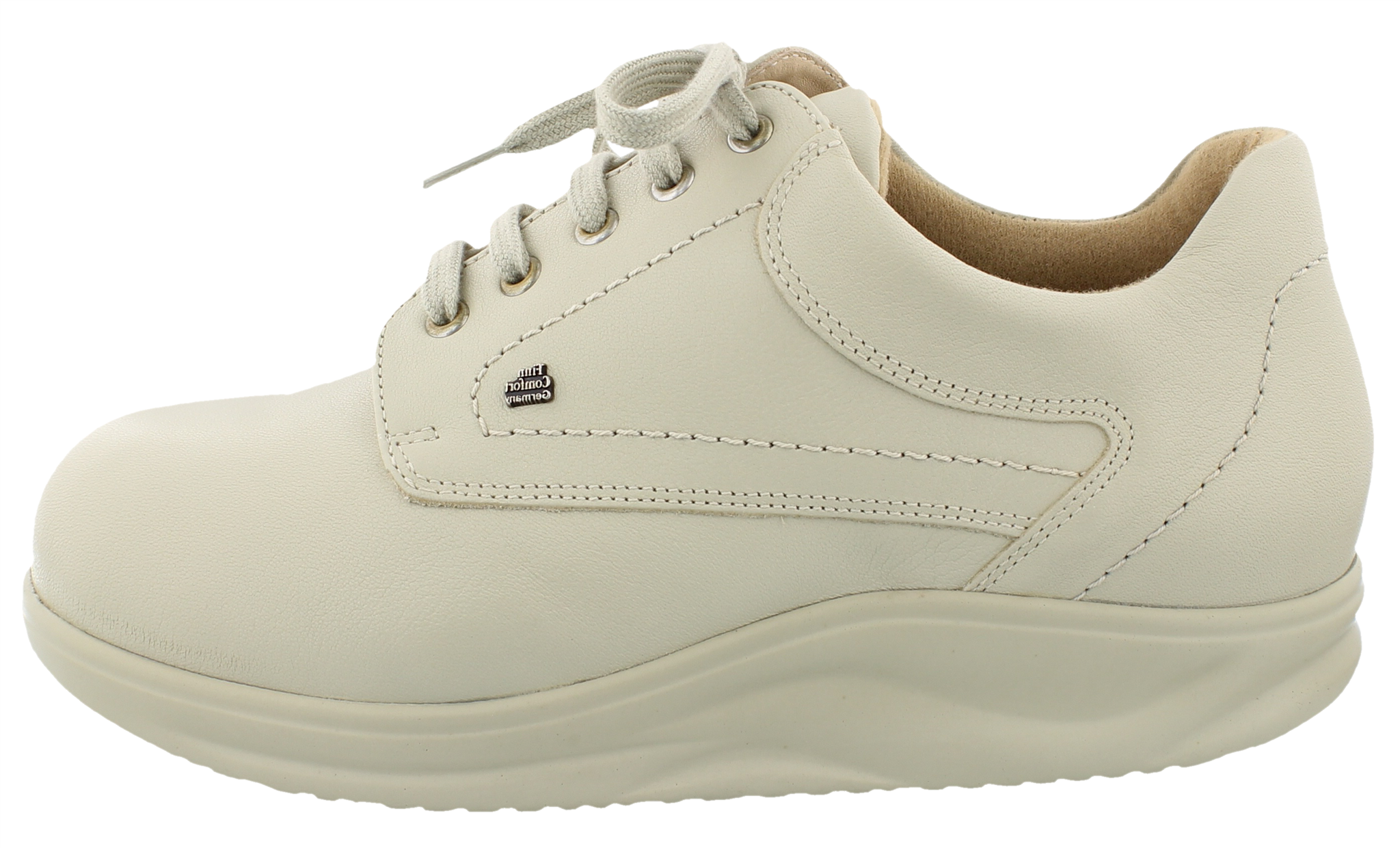 Finn Comfort veterschoen, orthopedisch model, geschikt voor losse voetbedden, voor de zeer brede voet, wit glad leer. Afwikkelzool. Geen voetbed. Hakhoogte 12 mm.
