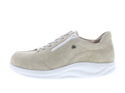 Finn Comfort dames veterschoen, model Otaru uit de Finnamic afwikkel lijn. Schoenen uit deze lijn zijn zeer geschikt bij het ontlasten en verlichten van hiel en voorvoet gerelateerde klachten, en zorgt tevens voor een rechtere rug houding en ondersteuning bij rugklachten. Beige suède, rits voor het instapgemak en een gepolsterde tong voor extra comfort op de wreef. Valt tussen een wijdte H en K, geschikt voor de bredere voet. Uitneembaar ecologisch en anatomisch gevormde voetbed.