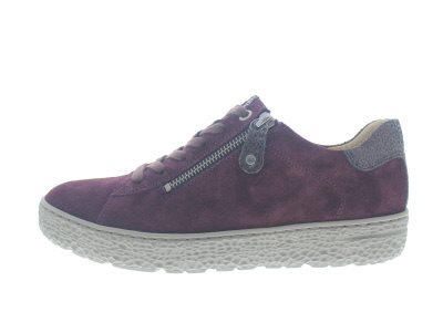 Hartjes dames veterschoen, model Phil. Voorzien van een flexibel en schokdempende EXTRALIGHT rubberen zool, licht van gewicht. Rits aan de laterale zijde voor het instap gemak. Aubergine suède. Wijdte H. Deze leest is geschikt voor de normale tot iets bredere voet, en voorzien van een uitneembaar voetbed. Hakhoogte 35mm. Hielheffing 15mm. Impregneren met Collonil Carbon Pro en regelmatig reinigen met een crêpe borstel