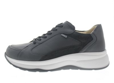 Finn Comfort robuuste heren sneaker met een chunky afwikkelzool, model Piccadilly uit de TrendLine. Zwart leer. Valt als een wijdte H, geschikt voor de iets bredere voet. Uitneembaar ecologisch en anatomisch gevormde voetbed. De buitenzool heeft dempende eigenschappen en wikkelt heerlijk af, ideaal bij gevoelige voorvoeten en hielklachten. Hakhoogte 45mm. Hielheffing 20mm. Onderhoudt deze schoenen met Collonil Carbon Pro voor de beste bescherming.