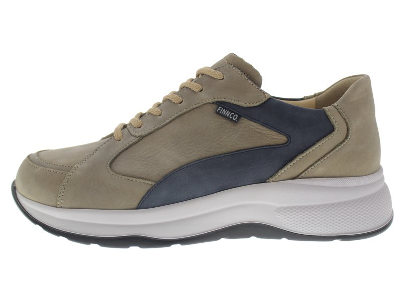 Finn Comfort robuuste heren sneaker met een chunky afwikkelzool, model Piccadilly uit de TrendLine. Taupe nubuck. Valt als een wijdte H, geschikt voor de iets bredere voet. Uitneembaar ecologisch en anatomisch gevormde voetbed. De buitenzool heeft dempende eigenschappen en wikkelt heerlijk af, ideaal bij gevoelige voorvoeten en hielklachten. Hakhoogte 45mm. Hielheffing 20mm. Onderhoudt deze schoenen met Collonil Carbon Pro voor de beste bescherming.