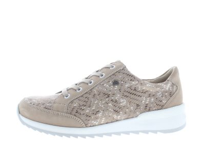 Finn Comfort dames veterschoen, model Pordenone uit de CitySport lijn, casual style sneaker, valt goed te combineren met vrije tijdskleding vanwege de tijdloze look, soepele afwikkelzool met een stevig profiel, beige/sesam nubuck leer, valt als een wijdte H, geschikt voor de normale tot iets bredere voet, uitneembaar ecologisch en anatomisch gevormde voetbed.