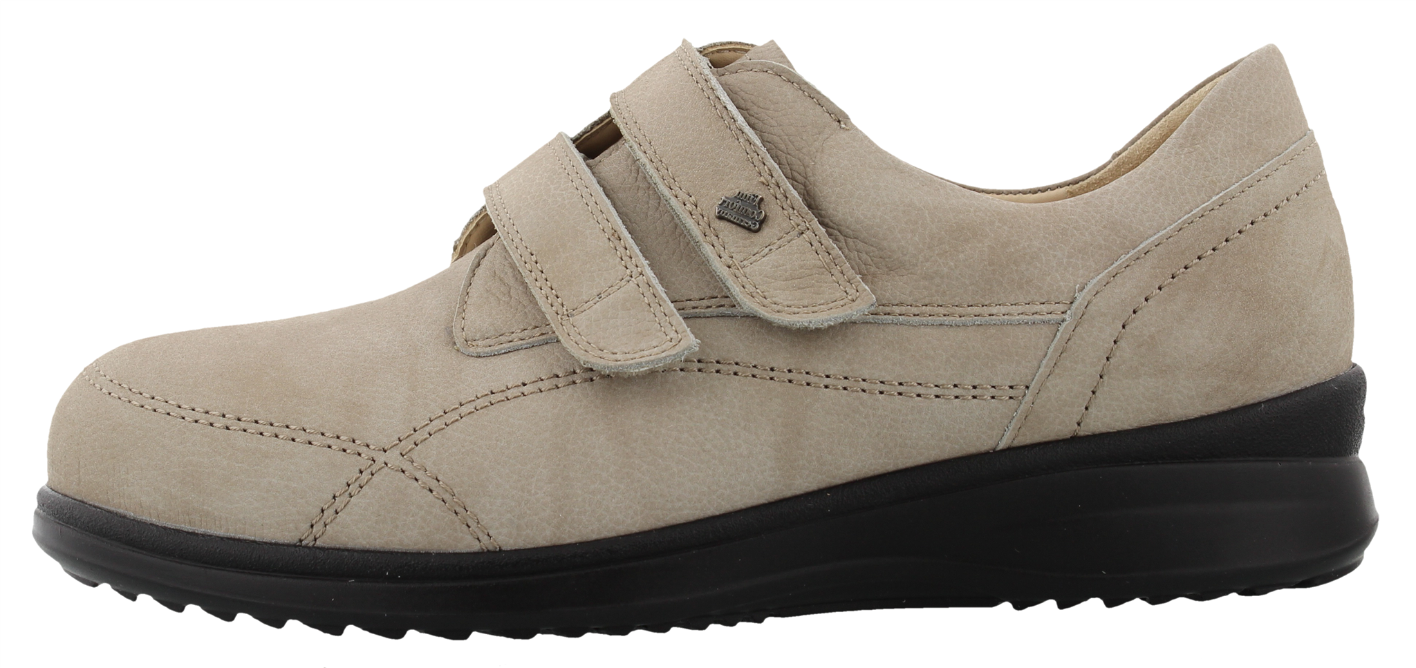 Finn Comfort Profylaxe klittenbandschoen, model 96522, wijdte M geschikt voor de zeer brede en gevoelige voet, grijs nubuckleer, zacht verwisselbaar voetbed, hakhoogte 25 mm.