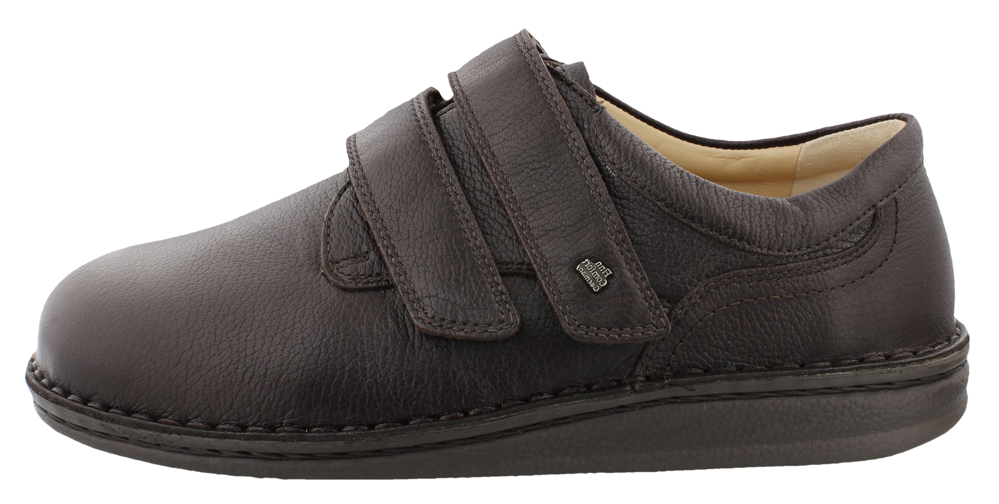 Finn Comfort heren klittenbandschoenen, profylaxe model voor de reumatische/diabetische voet, brede leest maar valt iets compacter, bruin glad leer, uitneembaar voetbed.