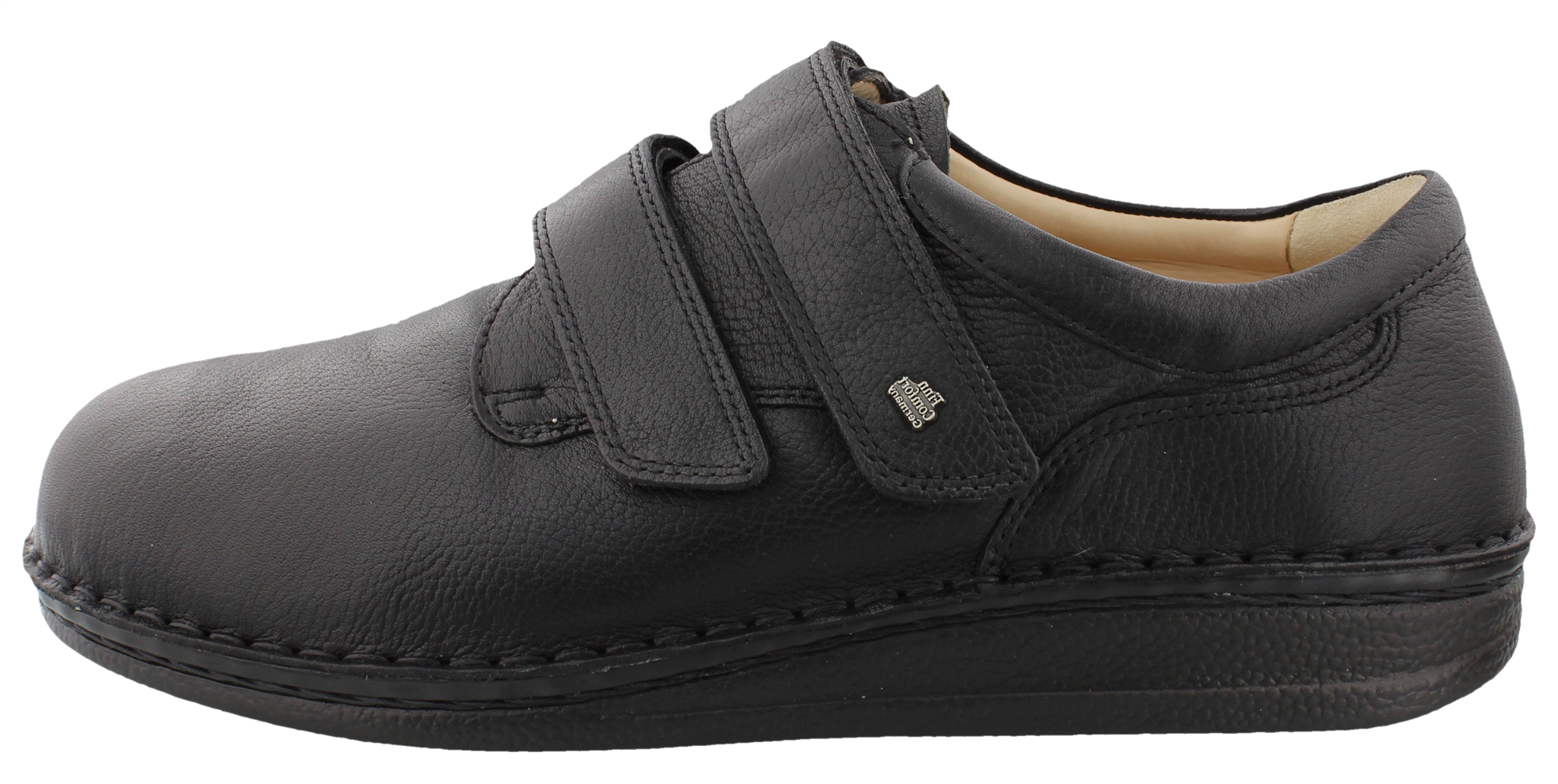 Finn Comfort Profylaxe klittenbandschoen, model 96103. Wijdte M, geschikt voor de zeer brede en gevoelige voet. Zwart superzacht sponarind nappa leer. Uitneembaar voetbed met een zachte toplaag voor extra demping.