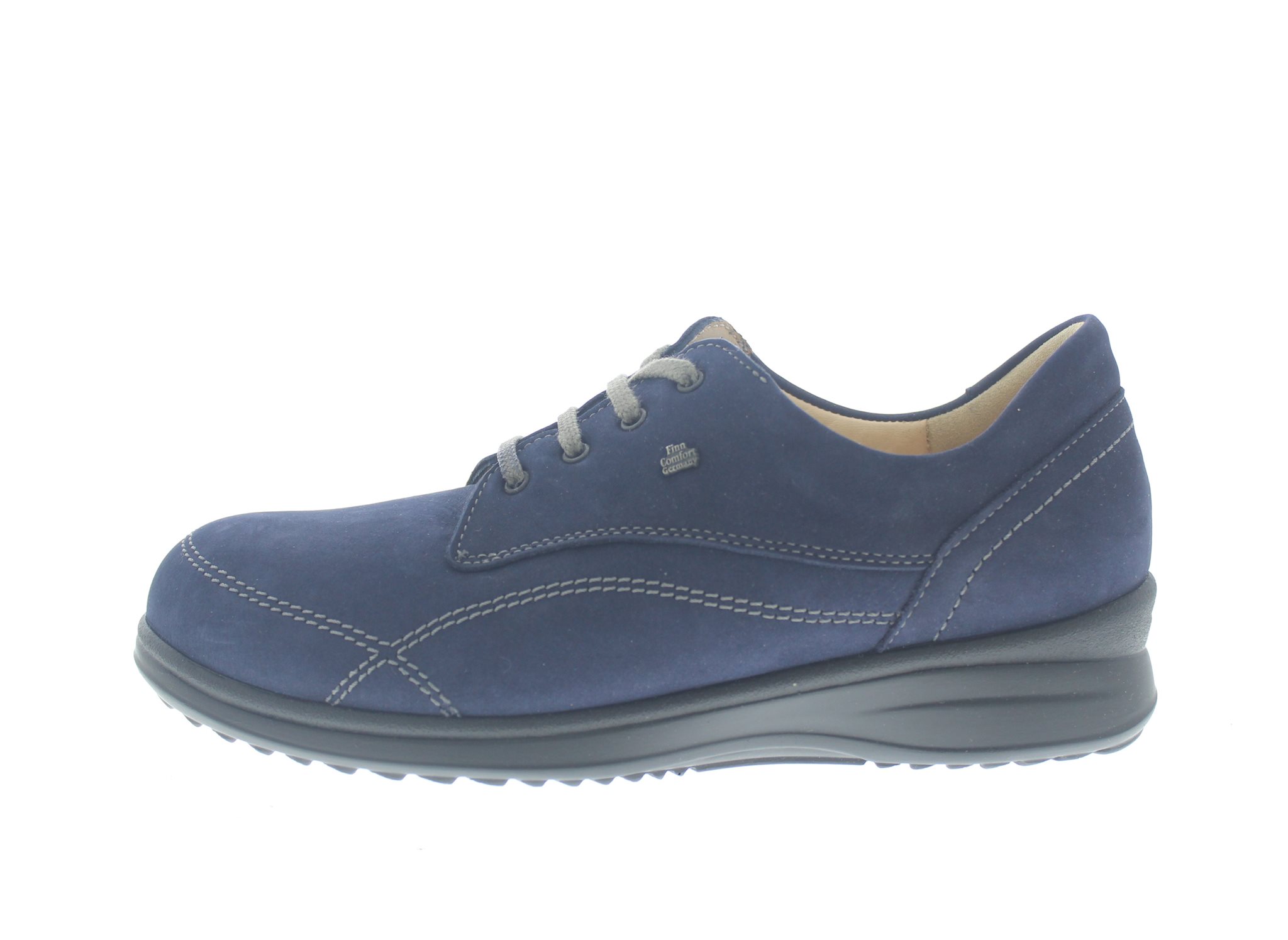 Finn Comfort dames veterschoen, diabetes verantwoorde profylaxe uitvoering met volledig gepolsterde binnenvoering en zonder voelbare stiknaden, dit model heeft een Lady-Line onderwerk, bordo nubuck leer, valt als een wijdte K maar door de gepolsterde voering valt deze schoen wel iets compacter, geschikt voor de kwetsbare brede voet maar valt wel iets compacter. Uitneembaar voetbed.