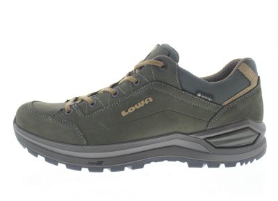 Lowa heren wandelschoen, model Renegade Evo GTX Lo. Voorzien van een Vibram antislip afwikkelzool. Gore-Tex waterdichte bescherming voor een gecontroleerde voetklimaat. Olijfgroen nubuck leer met details van mesh. Valt tussen een wijdte G en H, geschikt voor de normale voet. Uitneembaar voetbed. Hakhoogte 40mm. Hielheffing 15mm. De maten bij de Lowa schoenen verspringen. Maat 10=44,5 maat 10,5=45 maat 11=46 en maat 12,5=48.