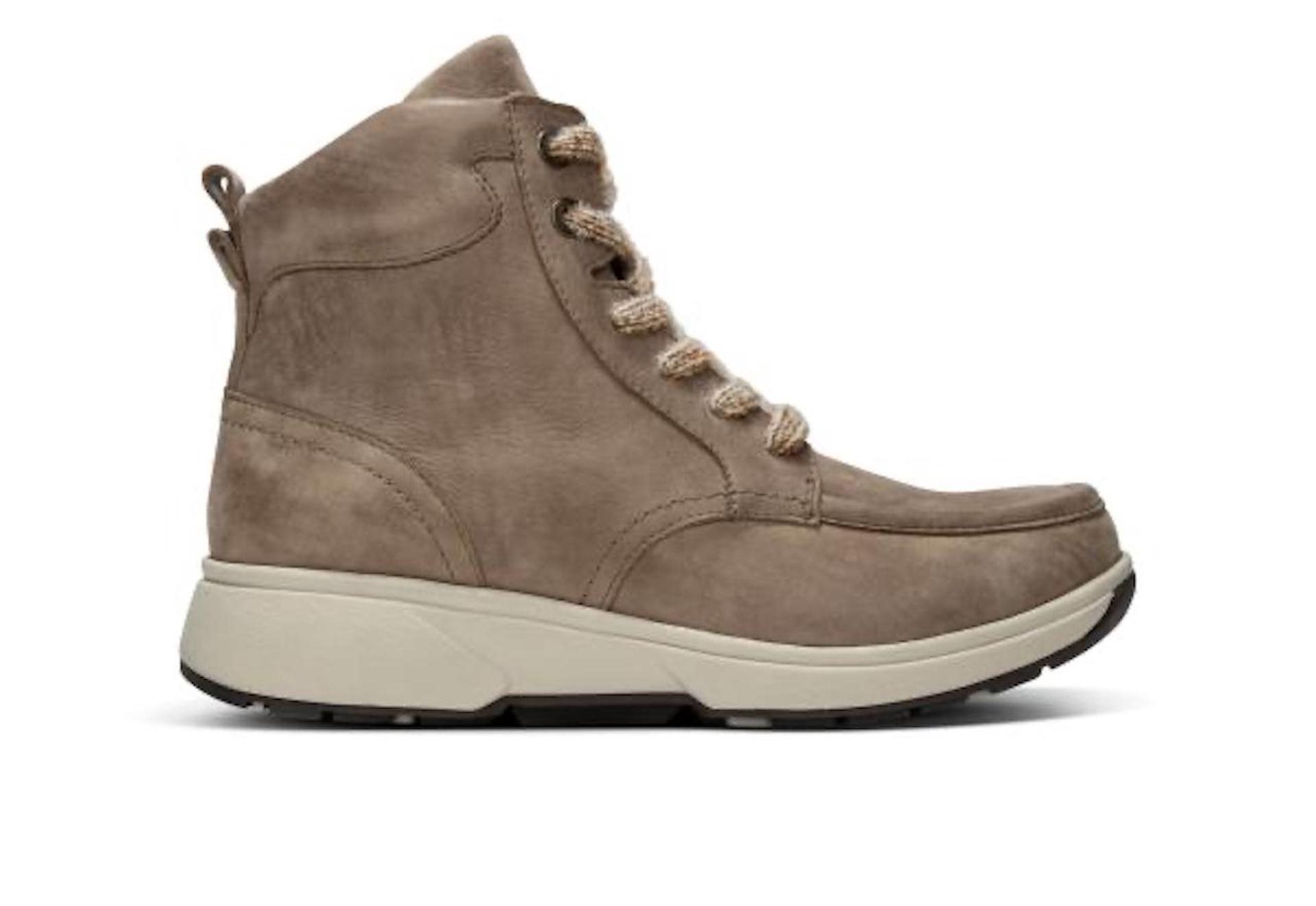 De nieuwe, enkelhoge veterboots bieden maximaal comfort in combinatie met mode en functionaliteit. Het hoogwaardige leer en de luxe voering van merinowol zorgen voor warm, zacht loopplezier, zelfs op koude dagen. De dempende zool biedt stabiliteit en grip. Dankzij de rits aan de zijkant is de boot gemakkelijk aan- en uit te trekken.
