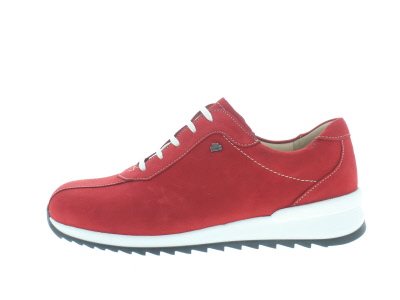 Finn Comfort dames veterschoen, model Sarnia uit de CitySport lijn. Casual style sneaker, valt goed te combineren met vrije tijdskleding vanwege de tijdloze look. Soepele afwikkelzool met een stevig profiel. Rood nubuck. Valt als een wijdte H, geschikt voor de normale tot iets bredere voet. Uitneembaar ecologisch en anatomisch gevormde voetbed. Hakhoogte 30mm. Hielheffing 18mm. Onderhoudsadvies: Collonil Carbon Pro