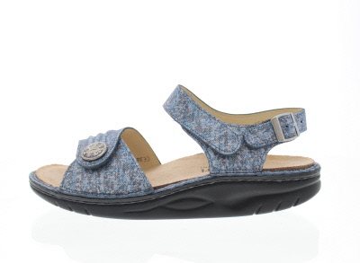 Finn Comfort dames sandaal, model Sausalito uit de Finnamic afwikkel lijn. Met twee verstelbare klittenbandsluitingen en een gesp. Uiterst geschikt bij het ontlasten van hiel en voorvoet gerelateerde klachten. Blauw nubuck leer met een metallic finish. Valt tussen een wijdte H en K, geschikt voor de bredere voet. Uitneembaar ecologisch en anatomisch gevormde voetbed.