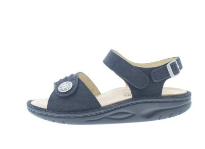 Finn Comfort dames sandaal, model Sausalito uit de Finnamic afwikkel lijn. Met twee verstelbare klittenbandsluitingen en een gesp. Uiterst geschikt bij het ontlasten van hiel en voorvoet gerelateerde klachten. Zwart nubuck. Valt tussen een wijdte H en K, geschikt voor de bredere voet. Uitneembaar ecologisch en anatomisch gevormde voetbed.
