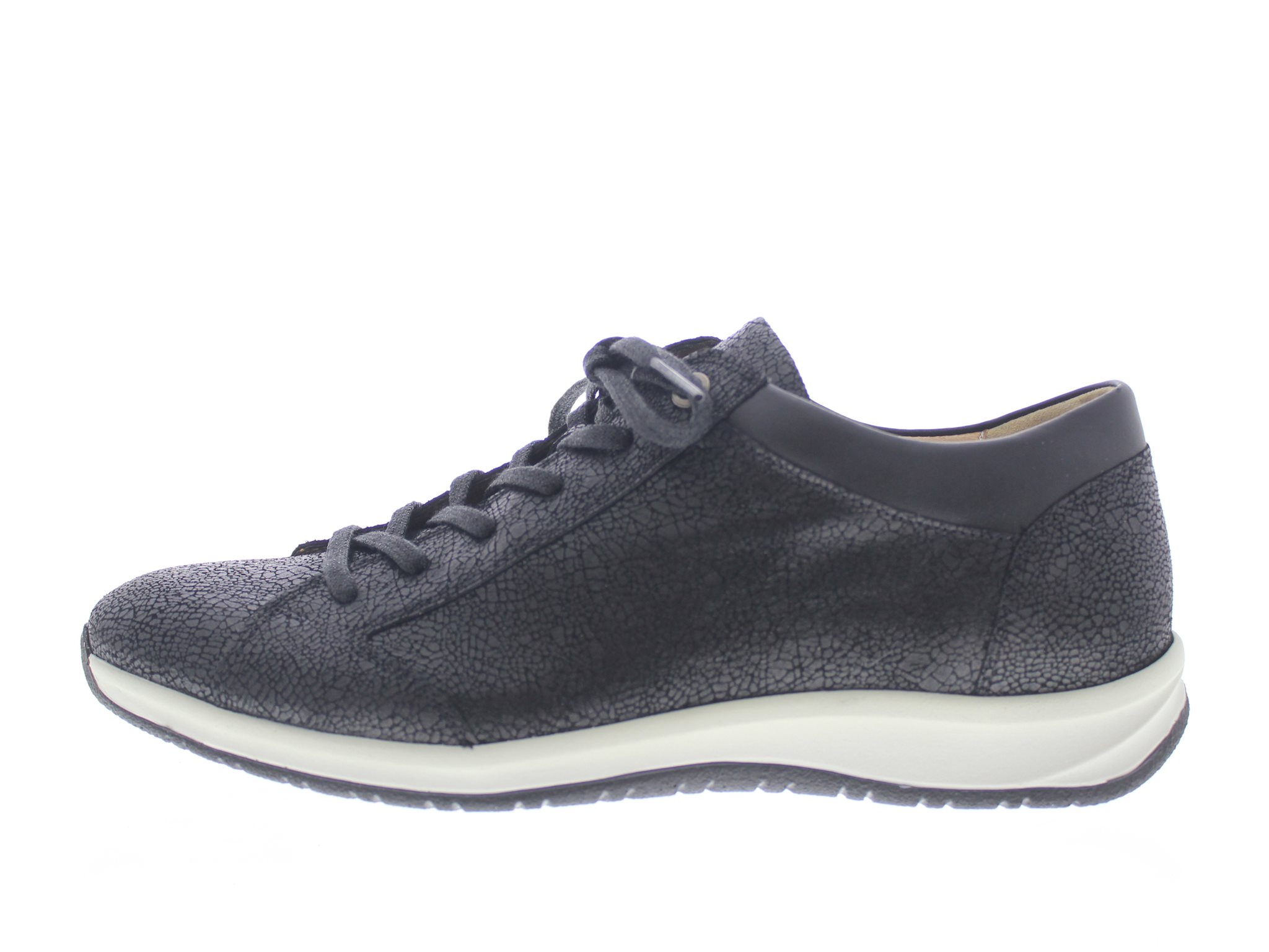 Hartjes casual sneaker, model Care SF. Een speciale smalle leest met een lekkere afwikkelzool dat niet te stug noch te slap is. De licht gepolsterde hielsluiting zorgt voor een goede aansluiting rondom de hiel. Chroomarme binnenvoering. Zwart krakelee leer. Wijdte D, geschikt voor de smalle voet. Uitneembaar voetbed.