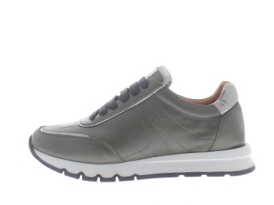 Grünland dames sneaker, model Shai, voorzien van een stijve afwikkelzool voor een lange en pijnloze wandeling, ideaal bij peesplaat en voorvoet gerelateerde klachten, en heeft een ontlastende werking op de achillespees en stijve kuitspieren vanwege een hielheffing van 25mm, olijfgroen glad leer, valt als een wijdte H, geschikt voor de iets bredere voet, en heeft nauwelijks gewicht voor een schoen, uitneembaar voetbed.