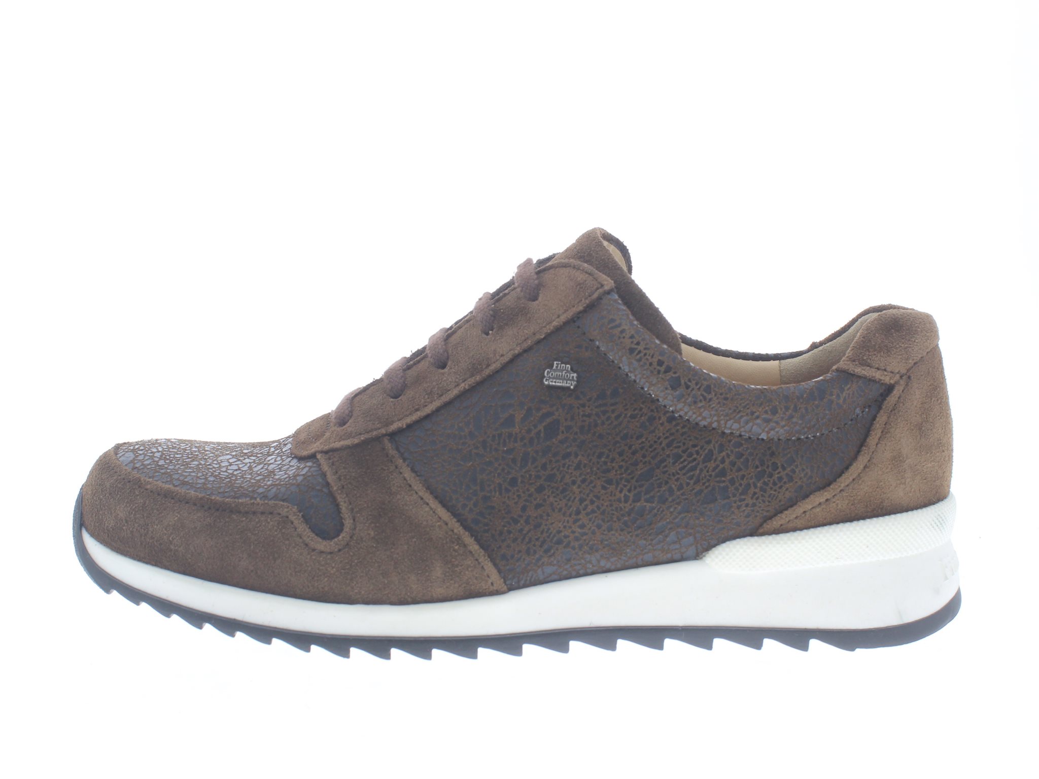 Finn Comfort dames veterschoen, model Sidonia uit de CitySport lijn. Casual style sneaker, valt goed te combineren met vrije tijdskleding vanwege de tijdloze look. Soepele afwikkelzool met een stevig profiel. Bruin suède. Valt als een wijdte H, geschikt voor de normale tot iets bredere voet. Uitneembaar ecologisch en anatomisch gevormde voetbed. Hakhoogte 30mm. Hielheffing 18mm. Onderhoudsadvies: Collonil Carbon Pro