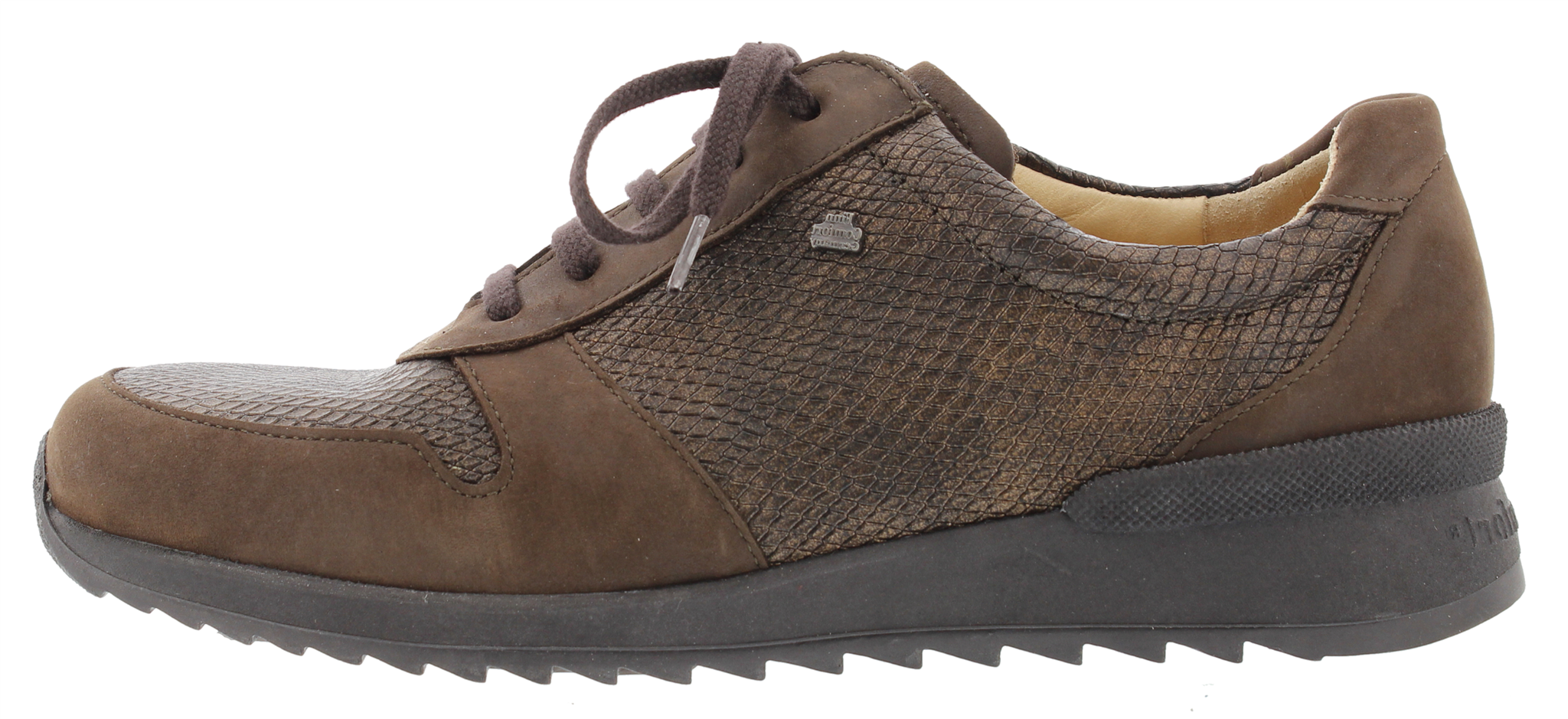Finn Comfort dames veterschoen, model Sidonia uit de CitySport lijn. Casual style sneaker, valt goed te combineren met vrije tijdskleding vanwege de tijdloze look. Soepele afwikkelzool met een stevig profiel. Bruin nubuck gecombineerd met leer. Valt als een wijdte H, geschikt voor de normale tot iets bredere voet. Uitneembaar ecologisch en anatomisch gevormde voetbed.