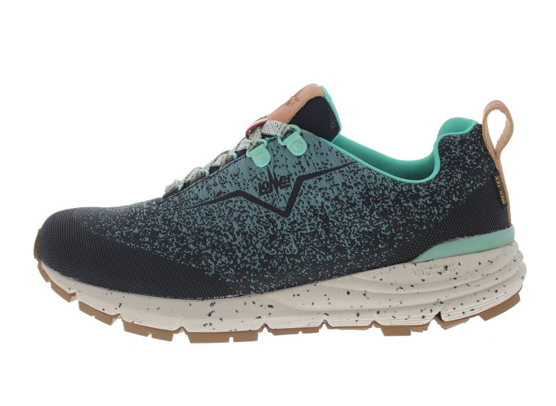 Lomer universele wandelsneaker, model Spider Ultra MTX. Gemêleerd geweven bovenwerk met mint als hoofdkleur, voorzien van een waterdicht MER-TEX membraan. Speciaal voor Lomer ontwikkelde Vibram zool met een Phylon tussenlaag voor een mooie dempende afwikkeling. Valt als een wijdte H, geschikt voor de normale tot iets bredere voet, verwisselbaar voetbed. Wandelschoen van Italiaanse bodem. Dit model valt een hele maat kleiner dan normaal. Hakhoogte 40mm. Hielheffing 15mm.