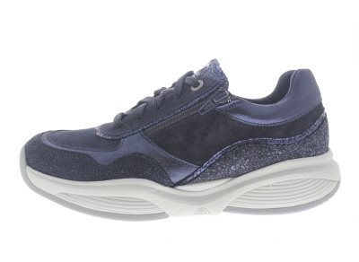 Xsensible dames veterschoen, model SWX11. Zeer comfortabele sneaker voor iedereen en bij uitstek comfortabel bij zere voeten, vanwege een speciaal ontwikkelde afrolzool met demping in de hiel en voorvoet. Vetersluiting met rits. Blauw leer en suède met een stretch voorblad. Wijdte HX, waarbij de X staat voor stretch op het voorblad om hamer- en klauwtenen te ontzien van druk. Deze pasvorm is geschikt voor de iets bredere voet. Hakhoogte 45mm. Hielheffing 15mm.