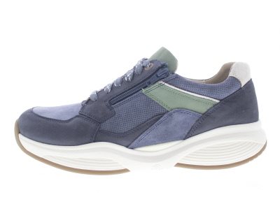Xsensible heren veterschoen, model SWX14. Zeer comfortabele sneaker voor iedereen en bij uitstek comfortabel bij zere voeten, vanwege een speciaal ontwikkelde afrolzool met demping in de hiel en voorvoet. Dit model heeft een rits. Blauw nubuck met suède. Wijdte HX, waarbij de X staat voor stretch op het voorblad om hamer- en klauwtenen te ontzien van druk. Geschikt voor de iets bredere voet. Hakhoogte 45mm. Hielheffing 15mm.