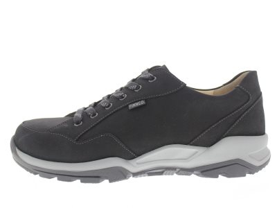 Finn Comfort heren veterschoen, model Tessin uit de ClassicSport lijn. Cross-over model tussen een casual sneaker en een outdoor-schoen. Stevige afwikkelzool met een grof profiel voor extra grip en geschikt bij het wisselen van terreinen. Heerlijk voor de dagelijkse wandeling door de buurt of op aangelegde bospaden. Dit model is niet waterdicht. Zwart nubuck leer. Uitneembaar ecologisch en anatomisch gevormde voetbed met een zachte toplaag, waar enigszins je eigen voetafdruk in blijft. Valt als een wijdte K, geschikt voor de brede voet. Dit is een uniseks model, afhankelijk van de kleur en de verkrijgbare maat.