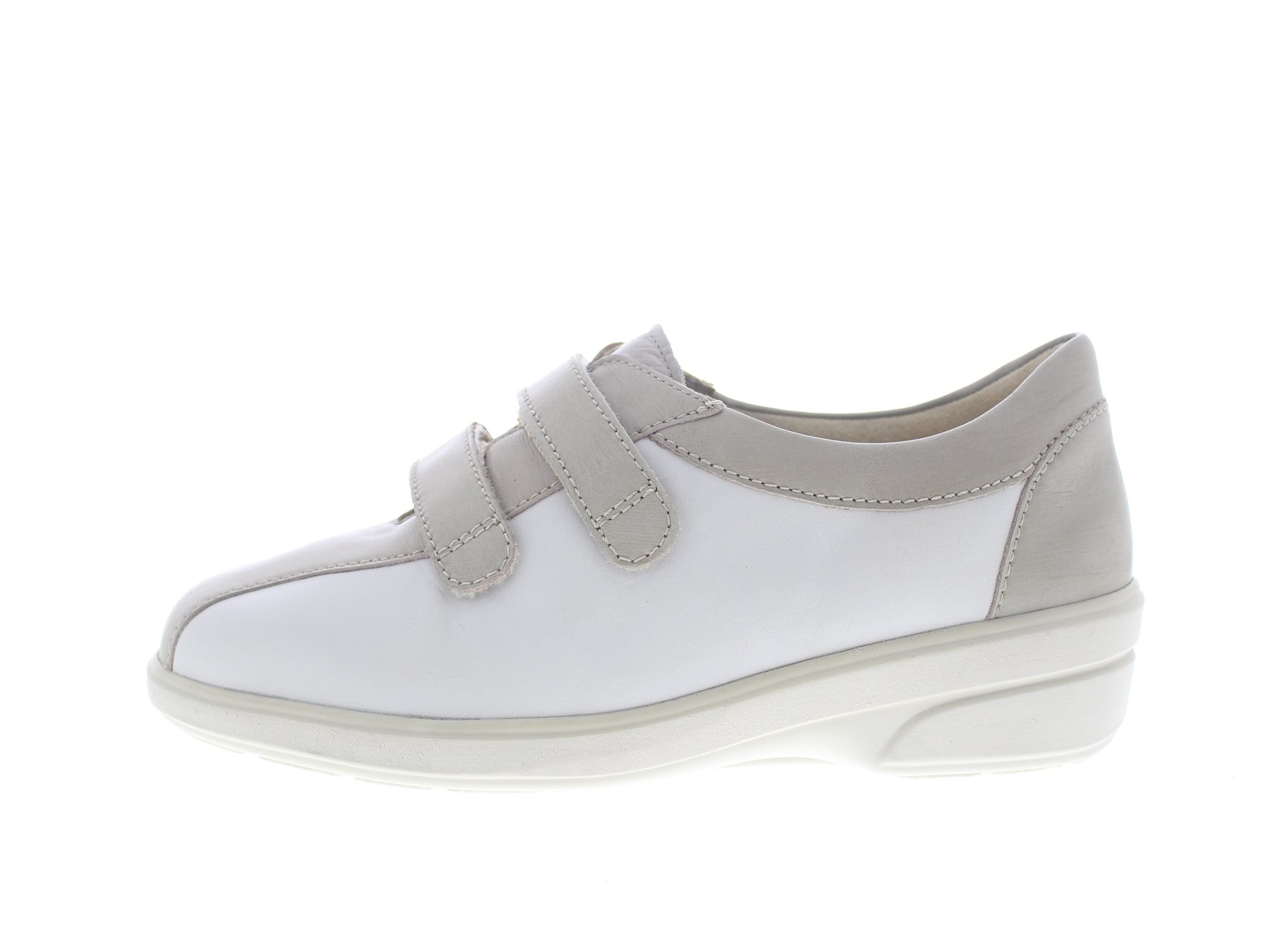 Solidus dames profylaxe klittenbandschoen, model Therapo, met twee klittenbandsluitingen en een stevig contrefort voor extra stabiliteit. De binnenvoering is van een zachte kwaliteit velours materiaal en volledig gepolsterd, geschikt bij diabetische en reumatische voetklachten, en ook klauw- en hamertenen. Beige leer. Wijdte W, geschikt voor de brede en kwetsbare voet. Het superzachte voetbed kan vervangen worden voor een eigen steunzool.