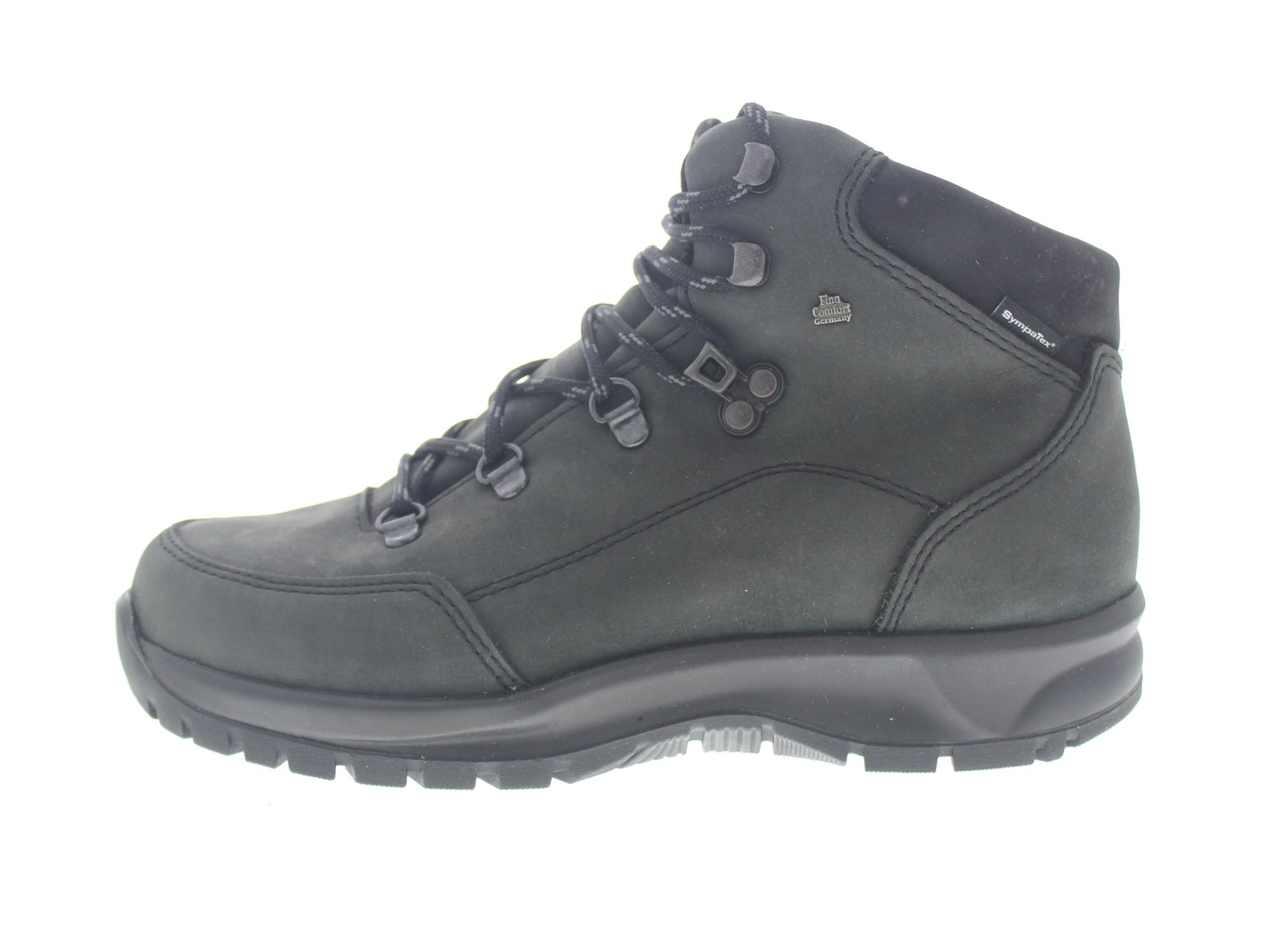 Finn Comfort universele bergwandelschoen, model Tibet uit de ClassicSport lijn. Voorzien van een stevige afwikkelzool met een breed draagvlak. SympaTex waterdichte hiker voor een goede en droge voetklimaat. Zwart washed nubuck. Valt tussen een wijdte H en K, geschikt voor de bredere tot brede voet. Uitneembaar ecologisch en anatomisch gevormde voetbed.