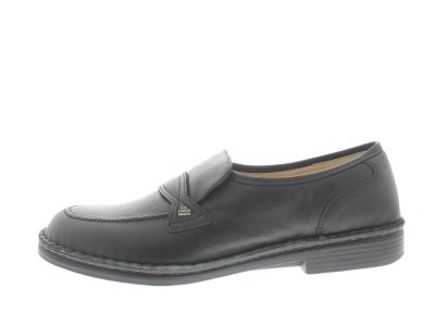 Finn Comfort heren instapper, model Toledo met hand gestikte zool uit de City lijn. Zwart glad leer. Valt tussen een wijdte G en H, geschikt voor de normale tot iets bredere voet. Uitneembaar ecologisch en anatomisch gevormde voetbed. Niet onderdoen aan loopcomfort is dit klassieke model uitermate geschikt bij uw kostuum.