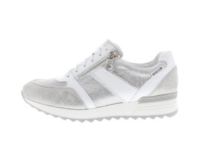Mephisto stevige dames veterschoen, model Toscana, voorzien van een stugge zool die de afwikkeling vergemakkelijkt en met een functionele dubbele ritssluiting voor het instapgemak, wit/zilver nubuck met glad gecombineerd leer, valt als een wijdte H tot K, geschikt voor de iets bredere voet, uitneembaar voetbed.