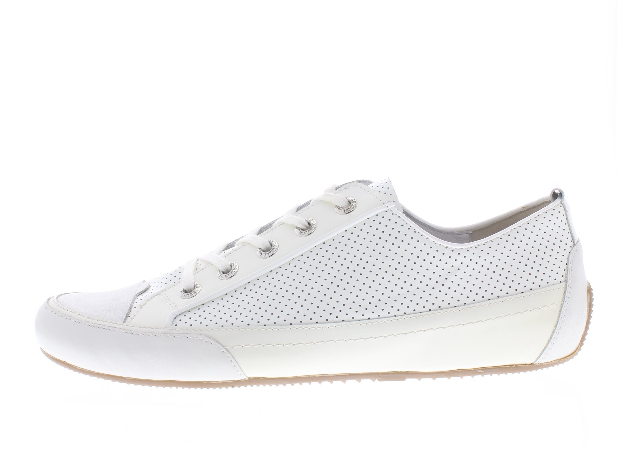 Semler dames veterschoen, model Tracy-1. Voorzien van een flexibele zool. Gemaakt van wit glad leer gecombineerd met lak. Wijdte G, geschikt voor de normale voet. Uitneembaar voetbed.