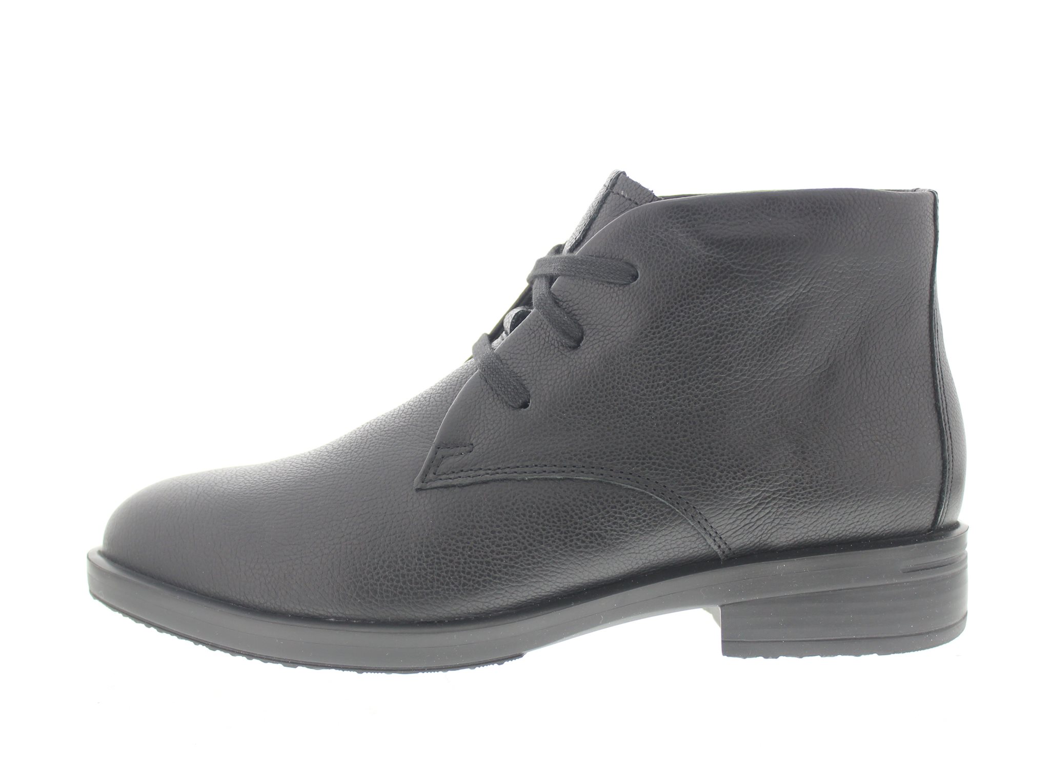 Hartjes dames bootie, model Trendy. Minimalistische look voor de easy going lifestyle. Iets stuggere zool met dempende eigenschappen en grip. Lodenfutter (flanel met wolmix) gevoerd voor een warmere voetklimaat. Uitneembaar voetbed. Zwart leer. Wijdte G, geschikt voor de normale voet.