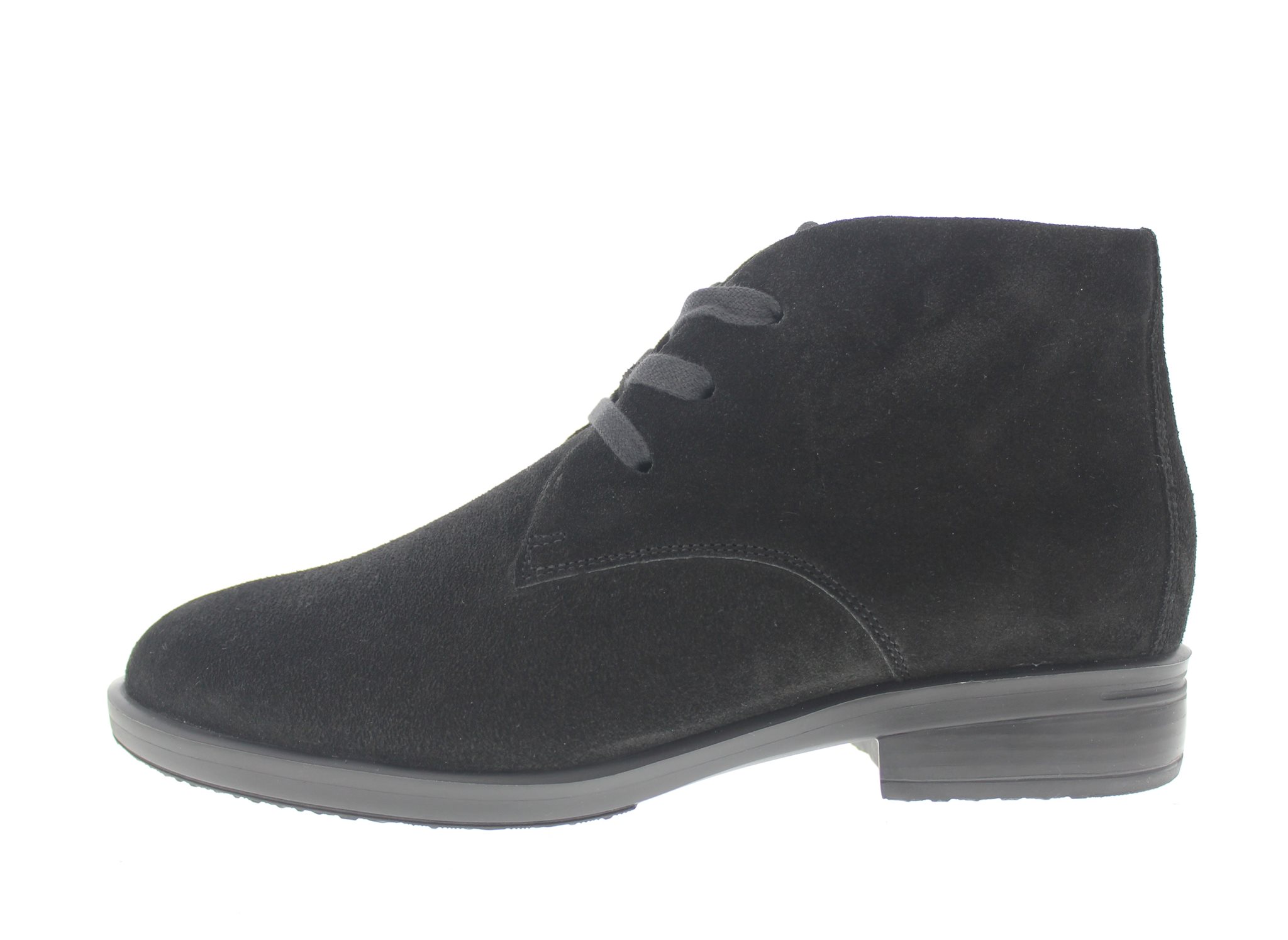 Hartjes dames bootie, model Trendy. Minimalistische look voor de easy going lifestyle. Iets stuggere zool met dempende eigenschappen en grip. Lodenfutter (flanel met wolmix) gevoerd voor een warmere voetklimaat. Uitneembaar voetbed. Zwart suède. Wijdte G, geschikt voor de normale voet.