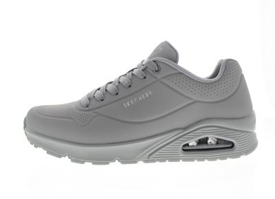 Skechers heren lifestyle sneaker, model ‘Stand on Air’ die qua vormgeving onder alle kleding staat in je gewenste kleur. Grijs imitatie leer look, Vegan verantwoord, met een buitenzool die de afwikkeling stimuleert en voorzien is van een luchtkamer bij de hiel dat pijn kan verlichten bij hielklachten. Valt als een wijdte G tot H, geschikt voor de normale tot iets bredere voet. Dit model heeft een vaste ‘memory foam’ voetbed. Hakhoogte 45mm. Hielheffing 20mm. Bescherm en verzorgadvies: Bama Super Combi spray